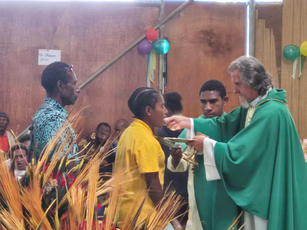 W mojej rzeczywistości tutaj wśród Nowogwinejczykow, także uczestniczymy w liturgii i obrzędach Kościoła Powszechnego, ale trzeba duszpasterskiej troski i uwagi aby te obrzędy okresu Wielkiego Postu: – posypanie popiołem, droga krzyżowa, śpiewy okresu postu, – nie stały tylko jakims „okolicznosciowym przestawieniem” (oni są urodzonymi aktorami), czy jakaś okresowa mobilizacja parafian aby częściej uczestniczyli w niedzielnej liturgii kościoła. Ale  poprzez specjalne rekolekcje prowadzone w każdej z naszych 9 wspólnot katolickich staramy sie spotkać każdą rodzinę, i przygotować ich (jeśli są na to gotowi) do osobistego – rodzinnego odnowienia przymierza z Jezusem, i powierzenia sie Jego Zbawczej opiece i posłudze poprzez przyjmowanie sakramentów.