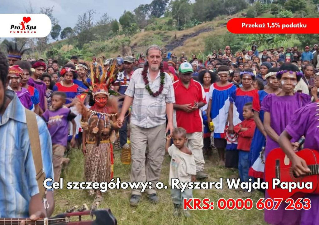 Kończąc zwracam sie z prośbą i apelem do tych z Was którzy mają takie możliwości, – a przez Was do innych życzliwych osób,- aby przy rozliczeniu podatku odpisać 1.5% na wsparcie mojej pracy misyjnej, i przesłać to na konto Fundacji „PRO  SPE” w Rzeszowie, ktora organizuje wsparcie dla misjonarzy, a od roku 2025 także dla mojej pracy tutaj. Przy robieniu takiego odpisu prosze zaznaczyc : „na wsparcie Misji o. Ryszarda Wajdy”.