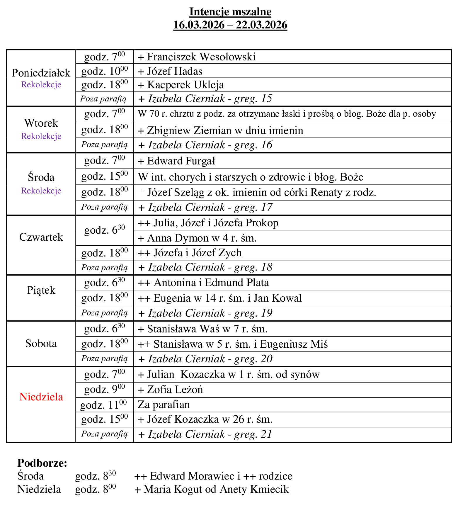 16.03.- 22.03.2026 r. Post author:x. Jacek Post published:13.03.2026 Post category:Intencje - kosciol