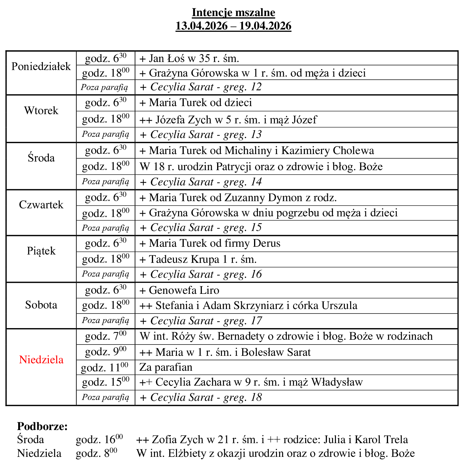 13.04.- 19.04.2026 r. Post author:x. Jacek Post published:10.04.2026 Post category:Intencje - kosciol