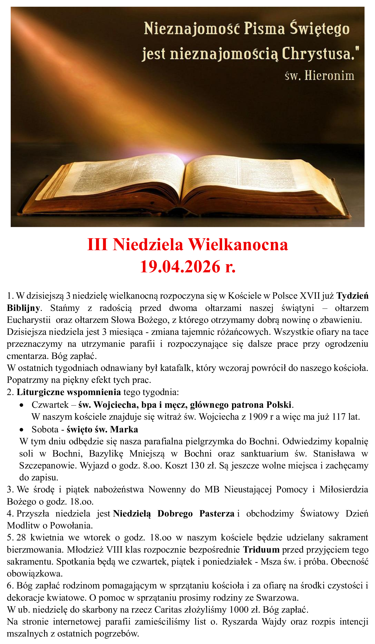 III Niedziela Wielkanocna 19.04.2026 r. Post author:x. Jacek Post published:17.04.2026 Post category:Ogłoszenia